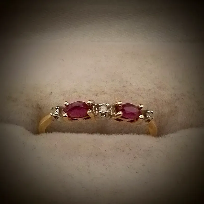 Anillo Original 10K Con Circones Blancos y Rojo Sencillo es talla 6 -1/4