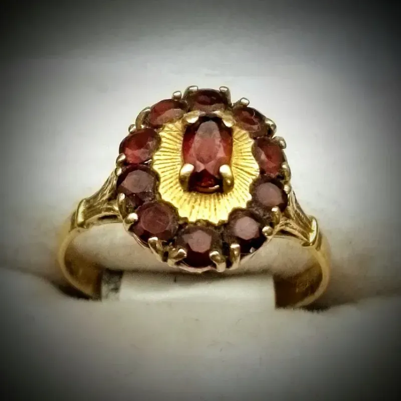 Anillo Original 18K con Granates es talla 8