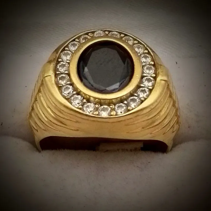 Anillo Original 14K con Volumen Con Onix Negro y Circones Blanco a su alrededor es talla 10