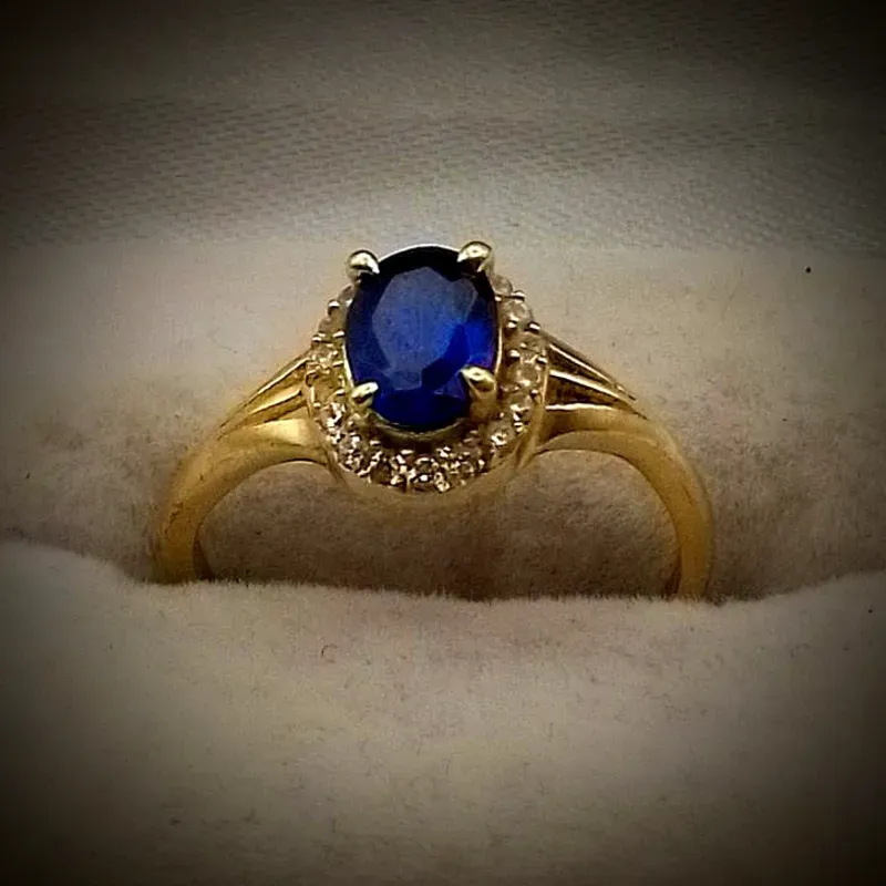 Anillo Original 14K Con Zafiro y Circones Blancos alrededor es talla 6 -3/4