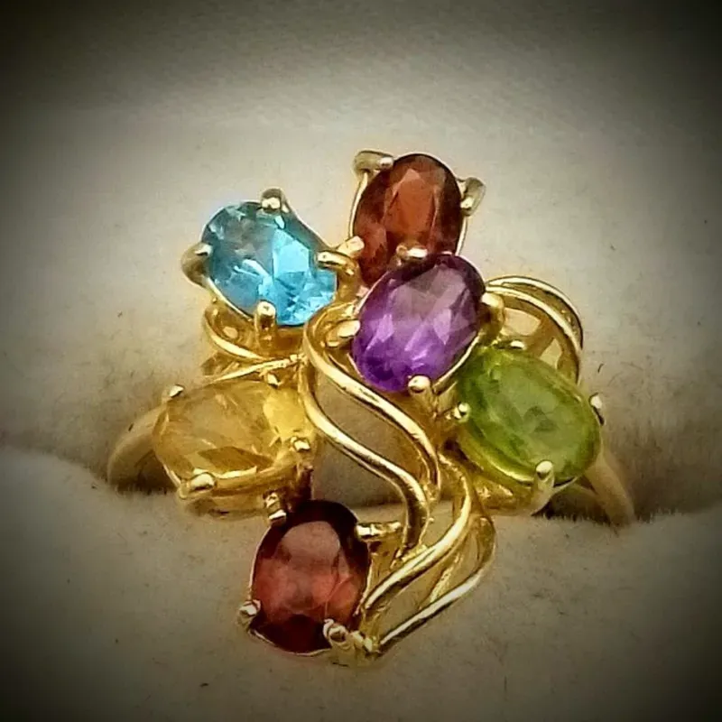 Anillo Original 14K de coctel de gemas macizo es talla 8