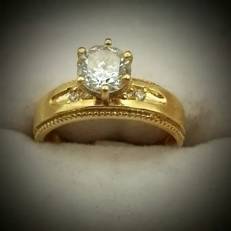 Anillo original 14K de compromiso fuerte de una sola pieza es talla 7
