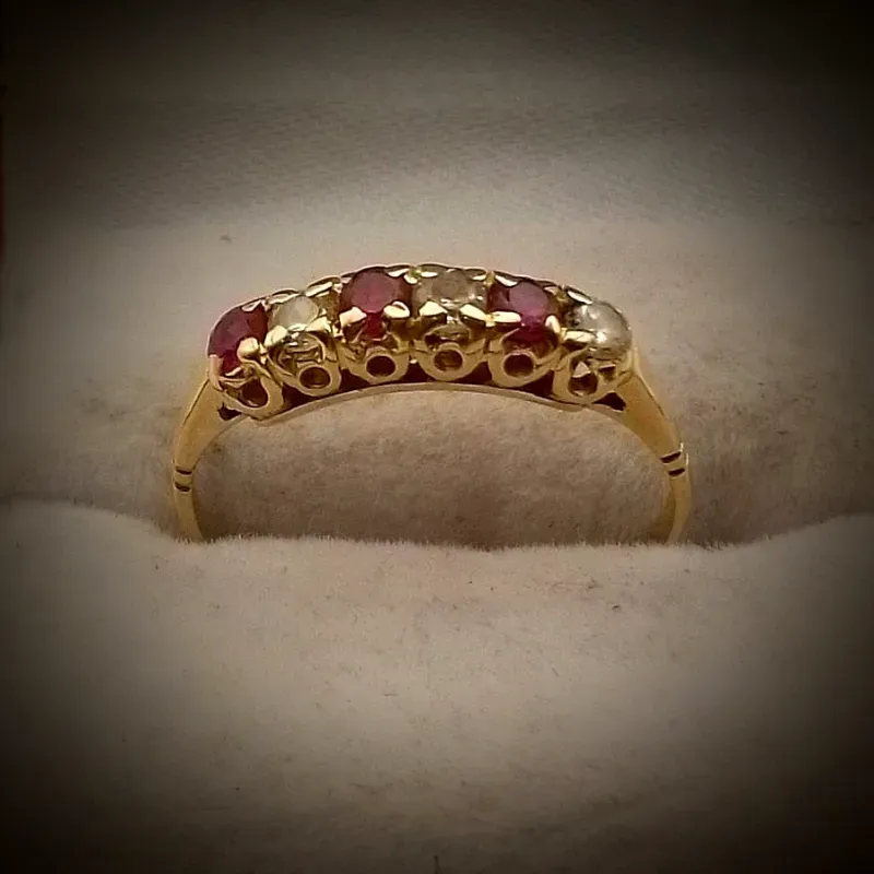 Anillo Original 10K Con Circones Blancos y Rojo Fuerte es talla 7-3/4