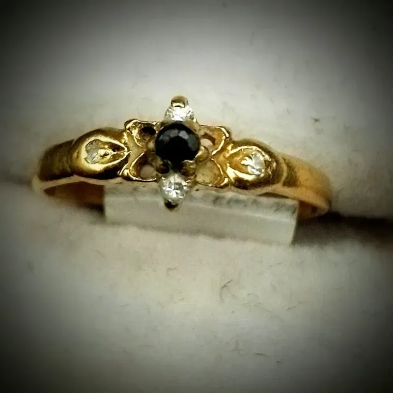 Anillo de una florecita con un zafiro en el medio Original 18K, talla 5 y medio
