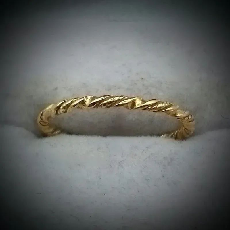 Anillo Original 18K Estilo Alianza Corrugada Sencilla Exclusiva es talla 7 3/4