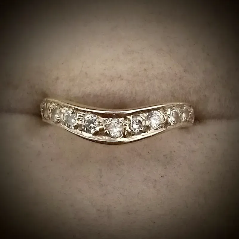 Anillo Original 14K Exclusivo en Forma de Ola con Brillantes y es oro natural blanco es talla 6 y media