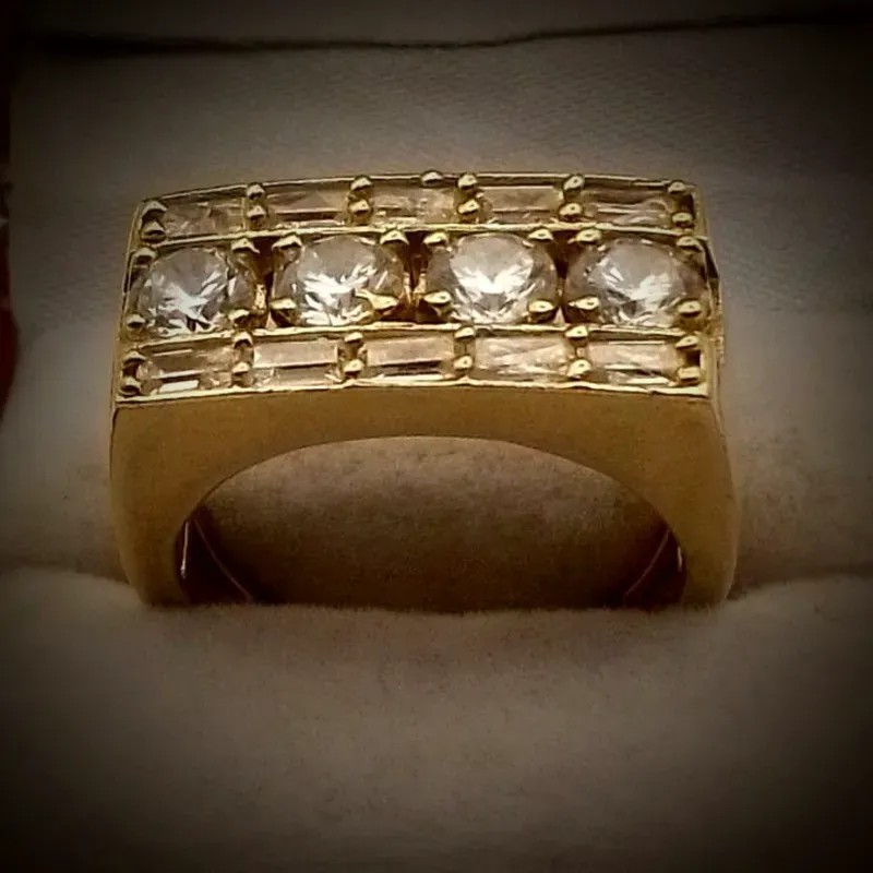 Anillo Original 10K Fuerte Rectangular Con Circones Blancos super exclusivo es talla 10-1/2