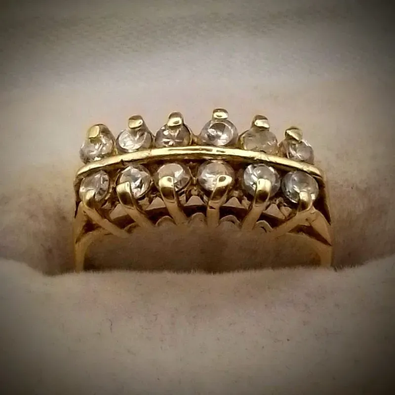 Anillo Original 10K Macizo Clásico con Dos hileras de circones blancos redondos es talla 5-1/4