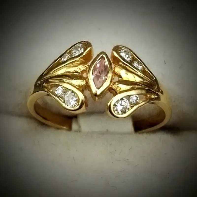 Anillo Original 18K estilo mariposa con brillante y una almendra en el Medio es talla 7