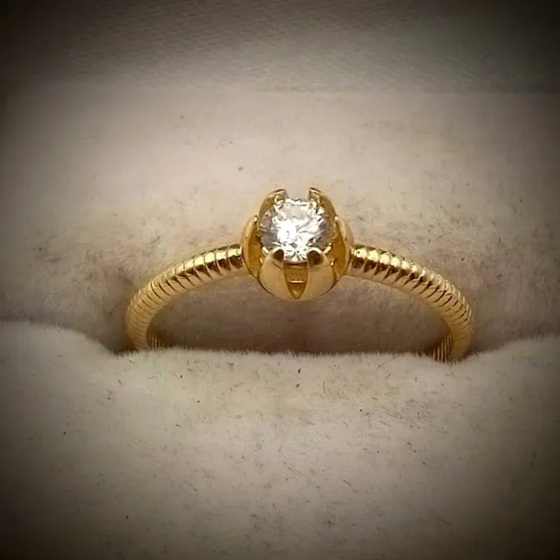 Anillo Nuevo Con Circón Blanco y El Aro Corrugado