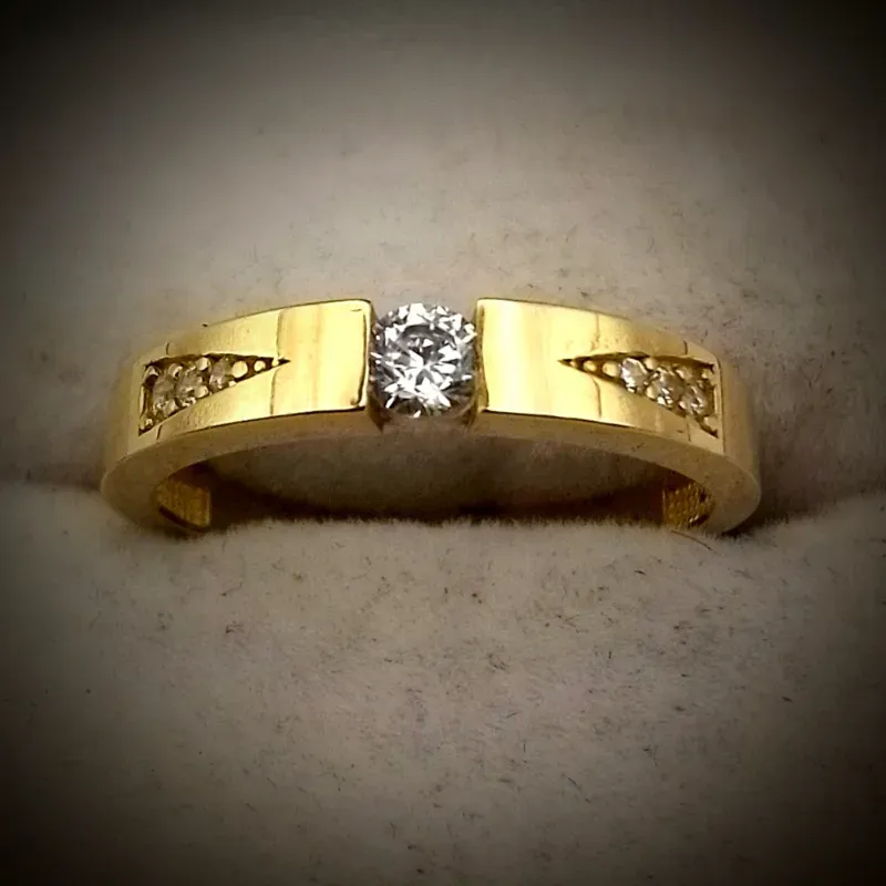 Anillo Original 10K Nuevo Estilo Alianza con Circón Blanco en El Medio y en ambos lados Un Triángulo Con Circones es talla 8
