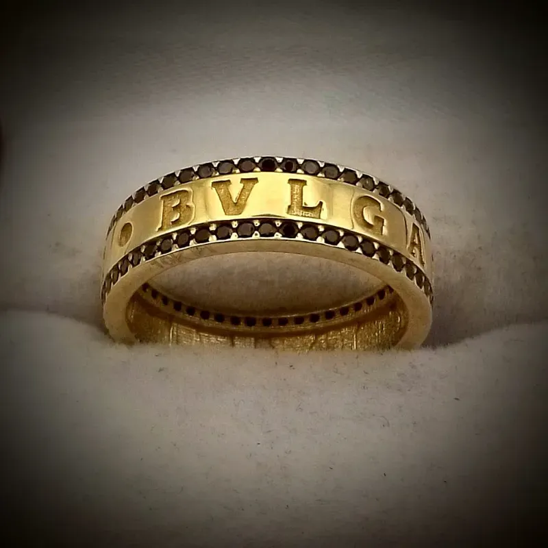 Anillo Nuevo Estilo Alianza con Circones Negro en el borde dice Bulgari