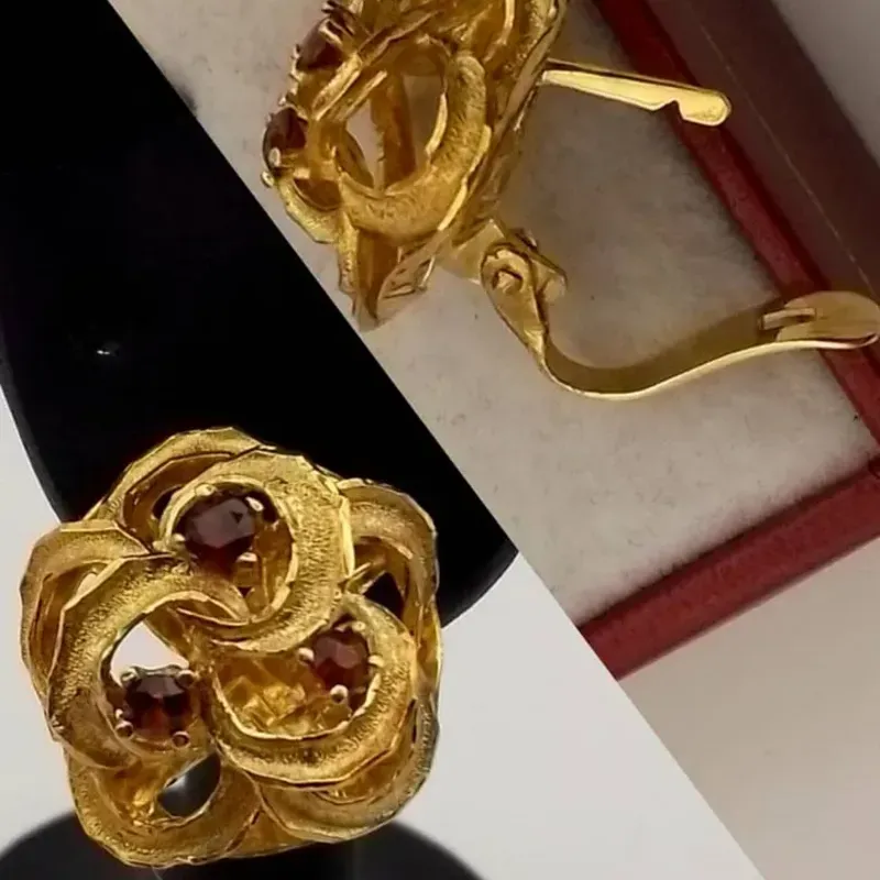 Aretes Originales 18K Exclusivos Calado Forma Flor Con Rubíes posee cierre Catalán
