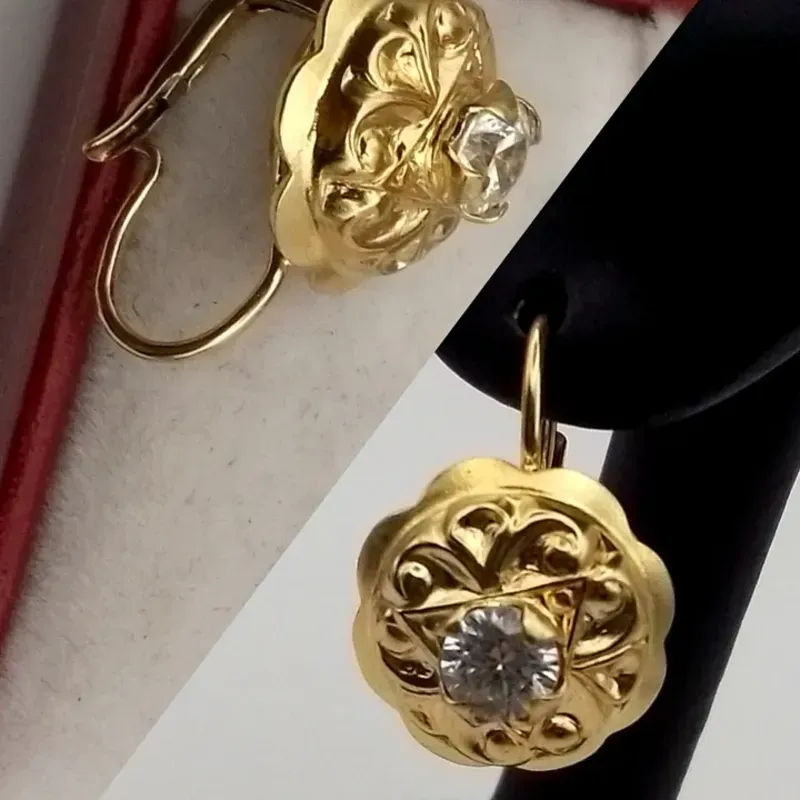 Aretes originales 14K colgantes con circón blanco poseen cierre Romano