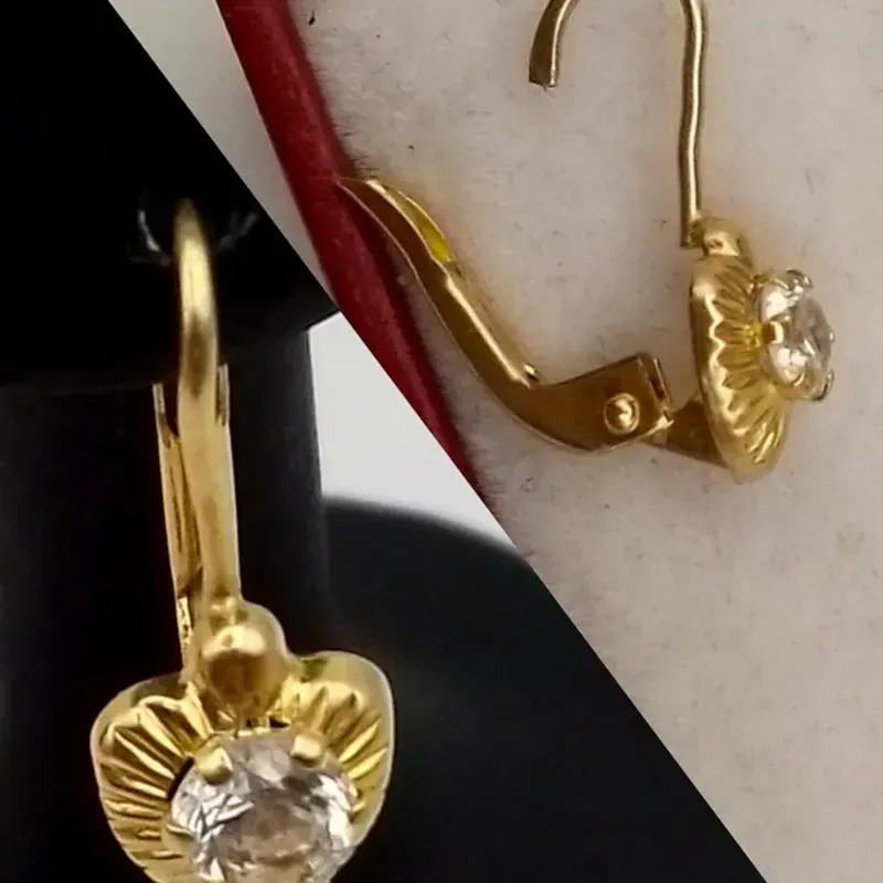 Aretes originales 14K de colgantes con circón blanco en forma de corazón poseen cierre romano