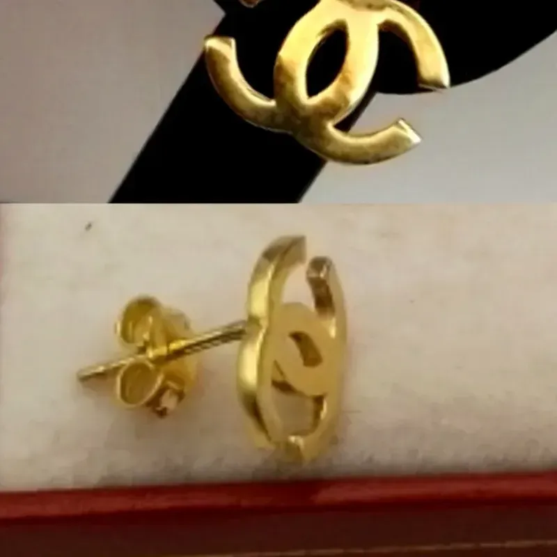 Aretes originales 14K pegados estilo Chanel con cierre de presión