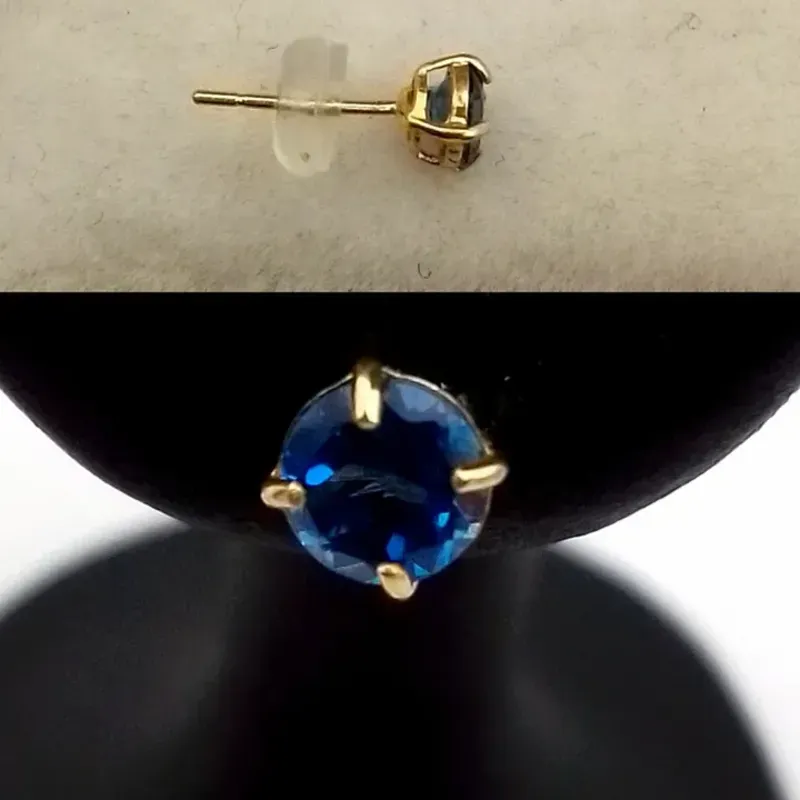 Aretes originales 14K con circón azul poseen cierre de silicona