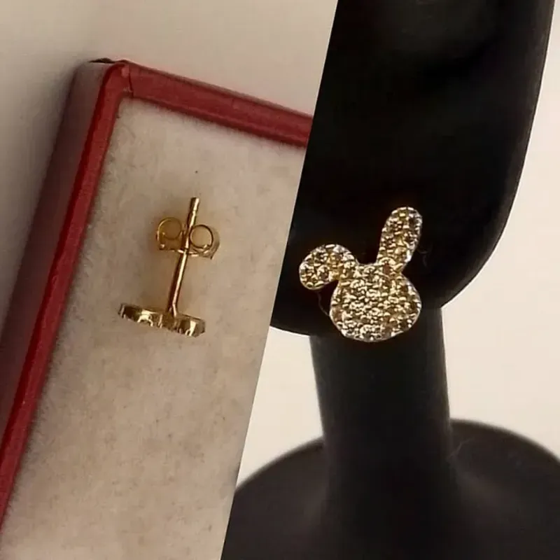 Aretes Originales 10K Pegados Con Circones Blancos Pequeños en forma de Conejo 🐰posee cierre de mariposa a presión