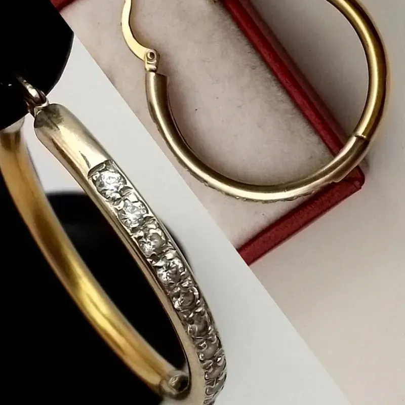 Argollas originales 14K de oro blanco y amarillo con circones son número 5 y tiene cierre italiano