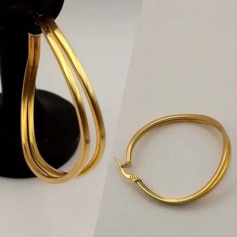 Argollas originales 10K doble lisas ovaladas son número 5 poseen cierre italiano