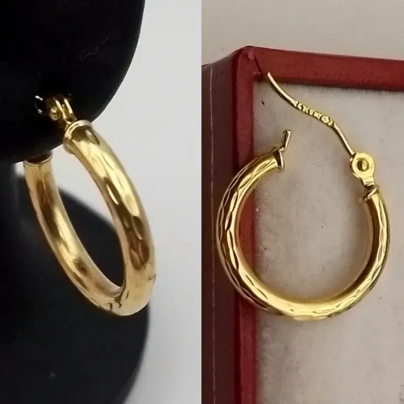 Argollas originales 14K estilo nevadas de tubo fino son número 1 poseen cierre italiano