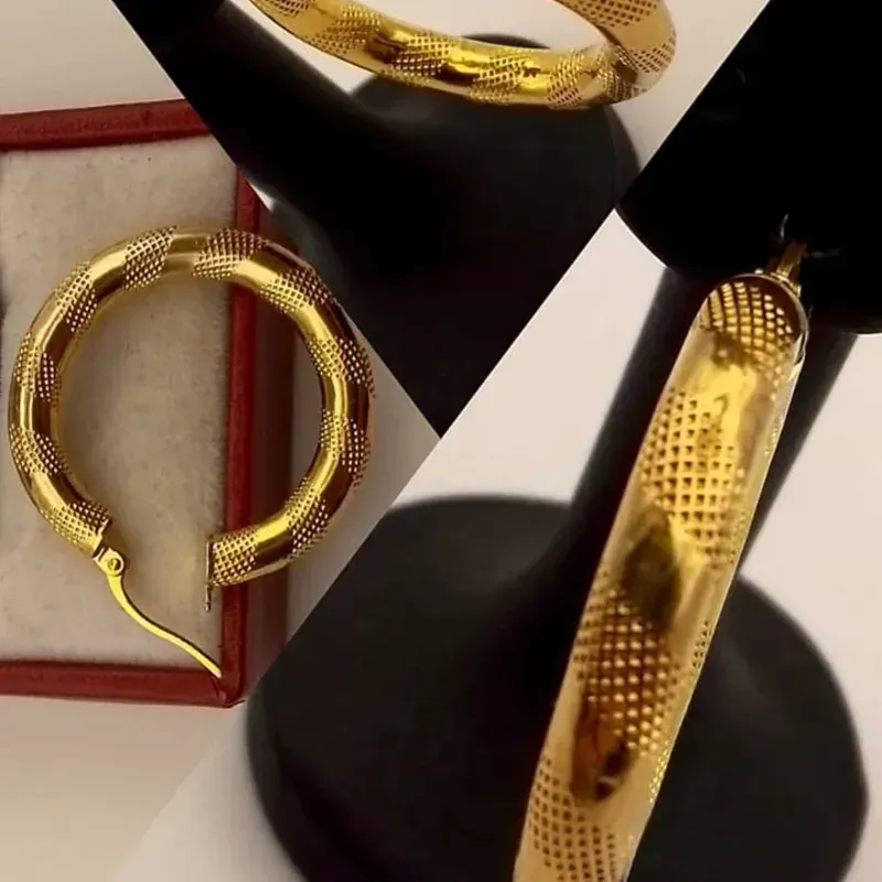Argollas Originales 10K Exclusivas Estilo Cebra Tubo Gordo mide de largo 3 cm y de ancho 3 cm