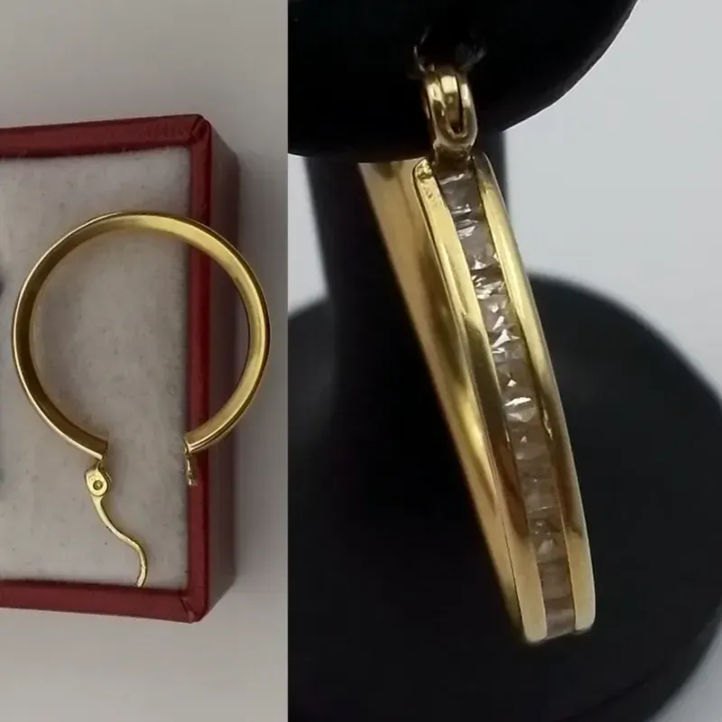 Argollas Originales 14K Fuerte Con Circones Blanco en el Medio poseen cierre italiano mide de largo 2.2 cm y de ancho 2 cm