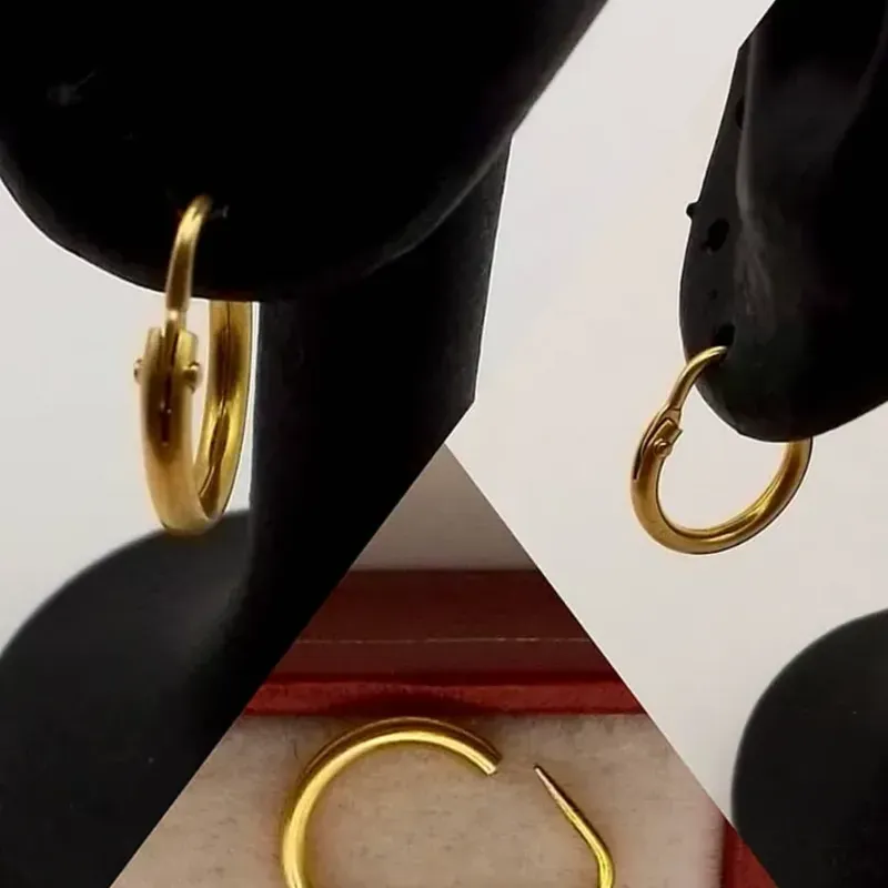 Argollas Originales 18 K Lisas de tubo fino mide de largo 1.4 cm y de ancho 1.1 cm.