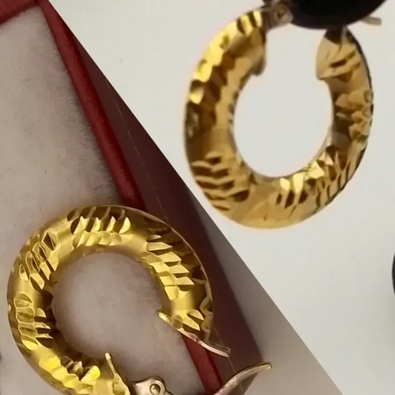 Argollas originales 18K planas con dibujos de oro blanco y amarillo con cierre italiano son número 2