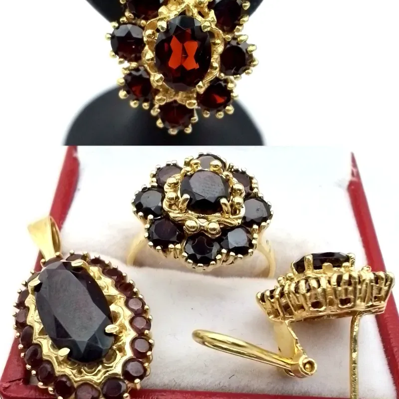 Conjunto original 18K compuesto por dije, aretes pegados con buen tranque cierre Omega y anillo talla 7