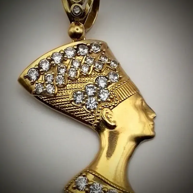 Dije Con Volumen Exclusivo Con La imagen de Nefestiti con Circones Blancos