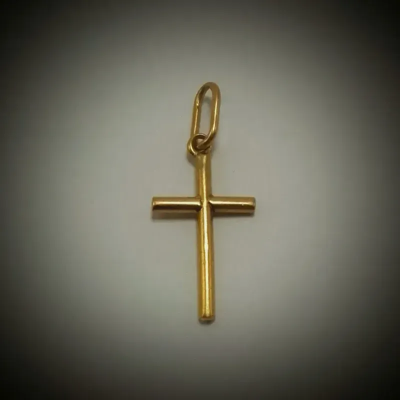 Dije crucifijo bien finito liso sin imagen original 18K, mide 2,2 cm de largo y 1 cm de ancho
