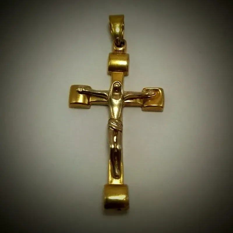 Dije original 18 k con crucifijo con Jesús en oro blanco dimensiones largo 4.5 cm y de ancho 2.2 cm