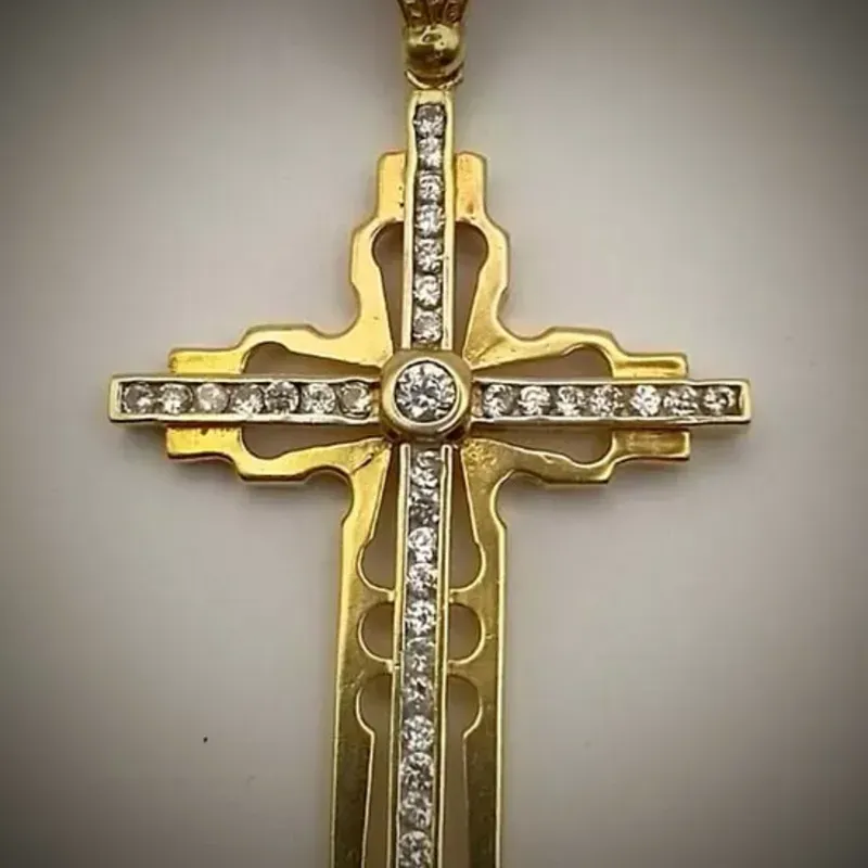 Dije Original 10K Crucifijo Grande Calado Circones Baguette mide de largo 8.2 cm y de Ancho 4.8 cm