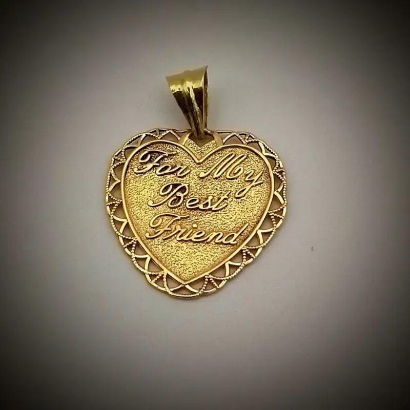 Dije Original 14K de Corazón Reversible mide de largo 4.3 cm y de ancho 3.3 cm