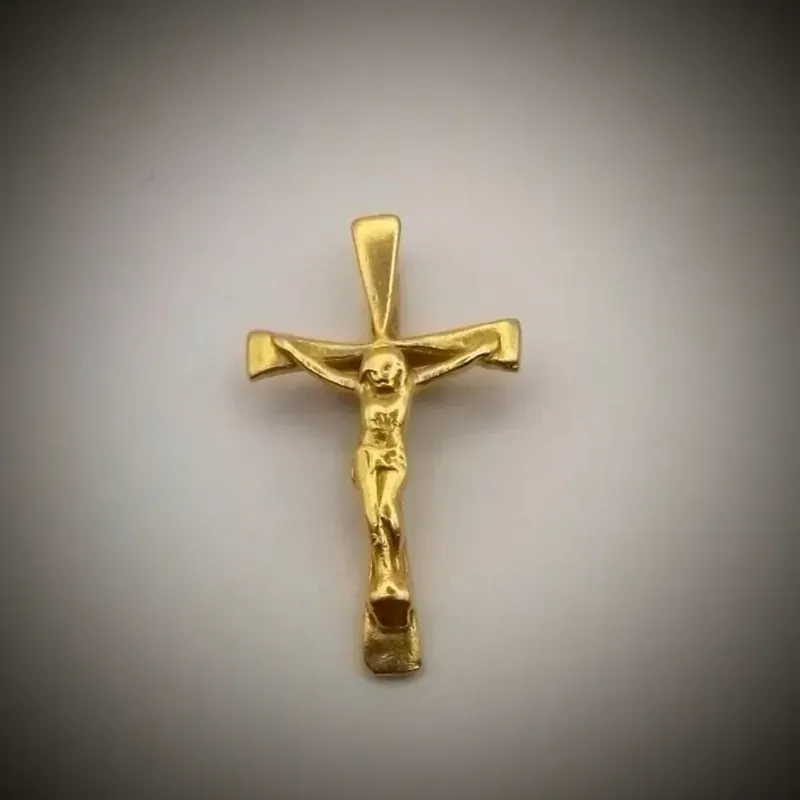 Dije Original 14K de Crucifijo con Jesús y posee Corbata Fija mide de largo 2.5 cm y de ancho 1.5 cm