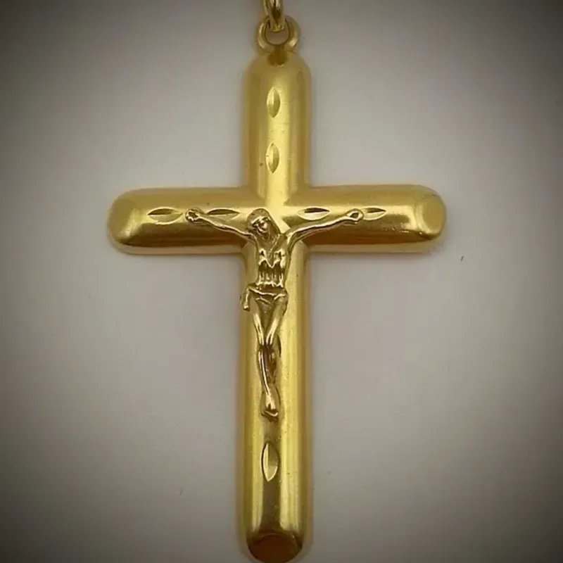 Dije Original 14K de Crucifijo Grande de Canelón con Jesús mide de largo 7.2 cm y de ancho 4.3 cm
