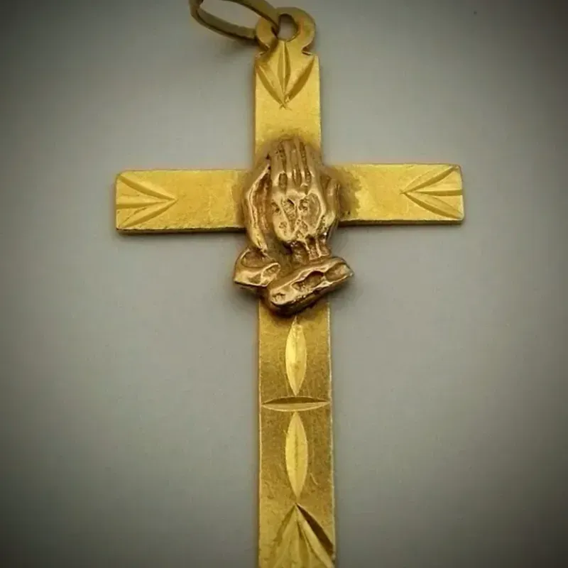 Mano de crucifijo plano con mano orando original 18K, mide 4 cm de largo y 2 cm de ancho