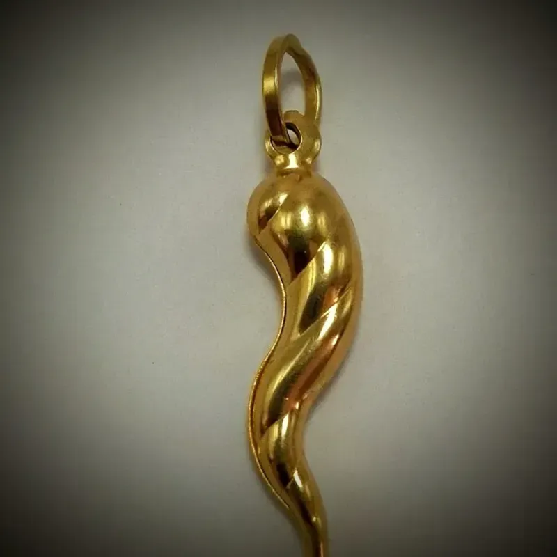 Dije de cuerno corrugado original 18K, mide 3,3 cm de largo y 0,6 cm de ancho
