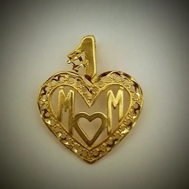 Dije Original 14K en forma de Corazón Calado y dice MOM posee corbata fija mide de largo 3.8 cm y de ancho 3.3 cm