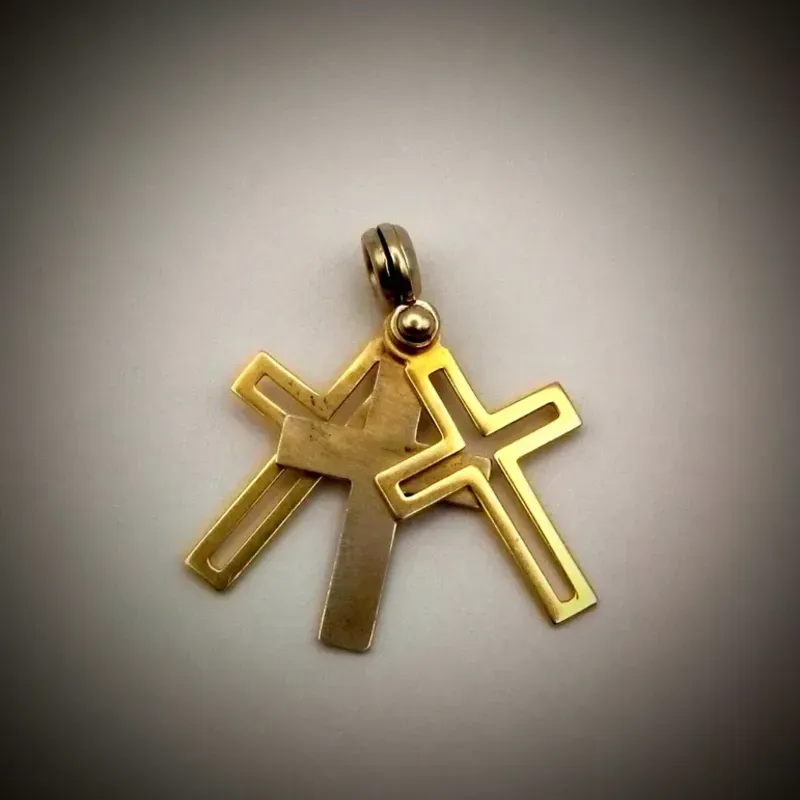 Dije Original 14K en forma de Crucifijo son (3) posee corbata redonda mide de largo 4 cm y de ancho 2.5 cm
