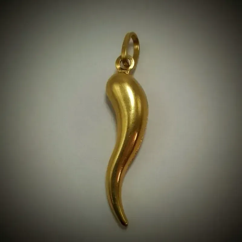 Dije original 18 k en forma de cuerno liso con volumen dimensiones largo 4 cm y ancho 0.7 cm