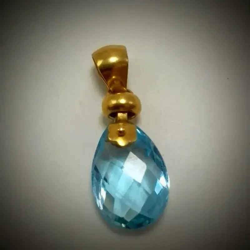 Dije Original 18K Exclusivo Con Gema Agua Marina Estilo Gota mide de largo 3.4 cm y de ancho 1.1 cm