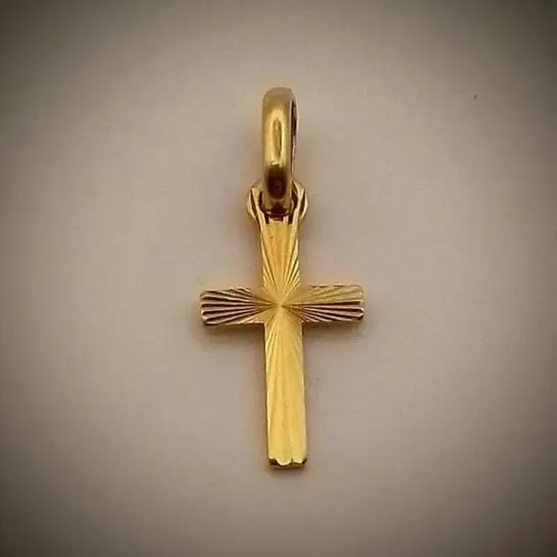 Dije Original 18K Forma de Crucifijo Pequeño mide de largo 1.9 cm y de ancho 0.8 cm