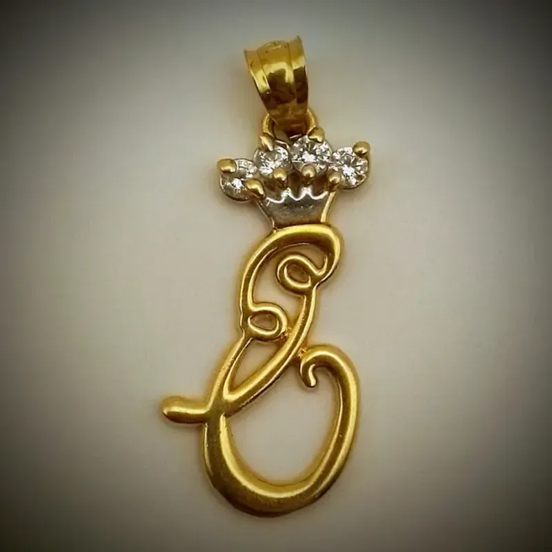 Dije Original 14K Letra E con una Corona con circones blanco mide de largo 4.3 cm y de ancho 2.3 cm