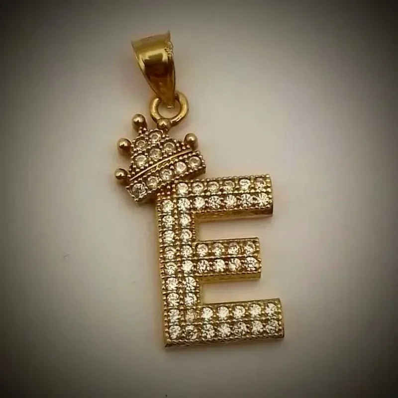 Dije Original 10K Letra E posee una Corona con circoncitos pequeños mide de largo 4 cm y de ancho 1.2 cm