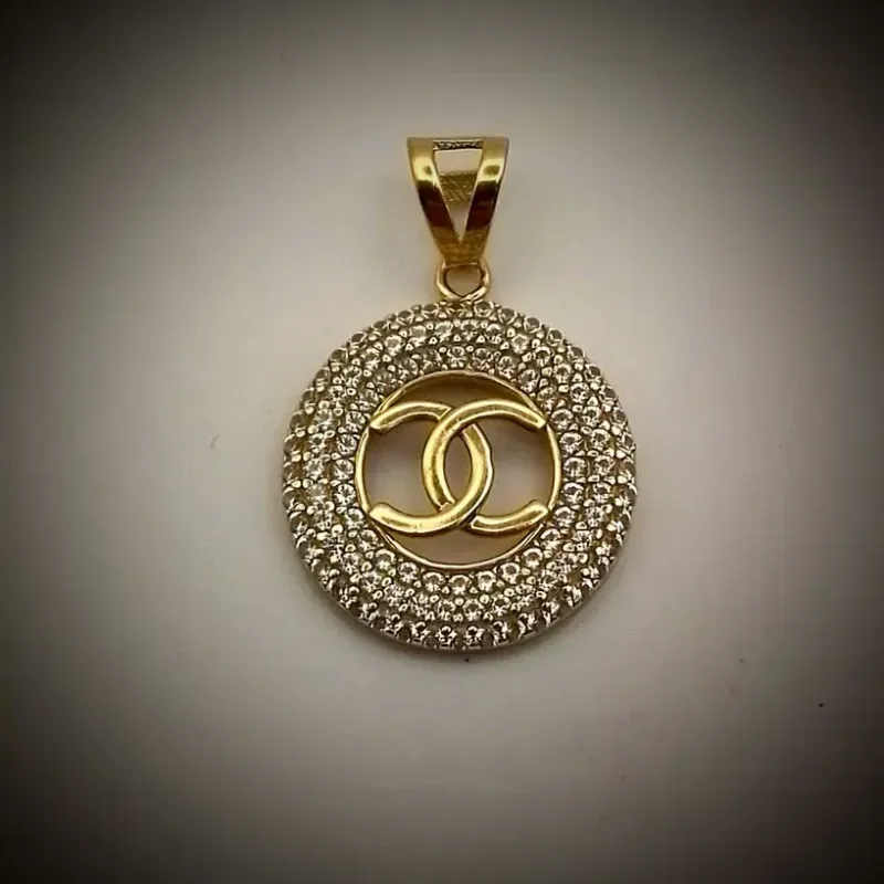 Dije Original 14K Redondo Chanel Circoncitos Alrededor mide de largo 3.5 cm y de ancho 2.5 cm