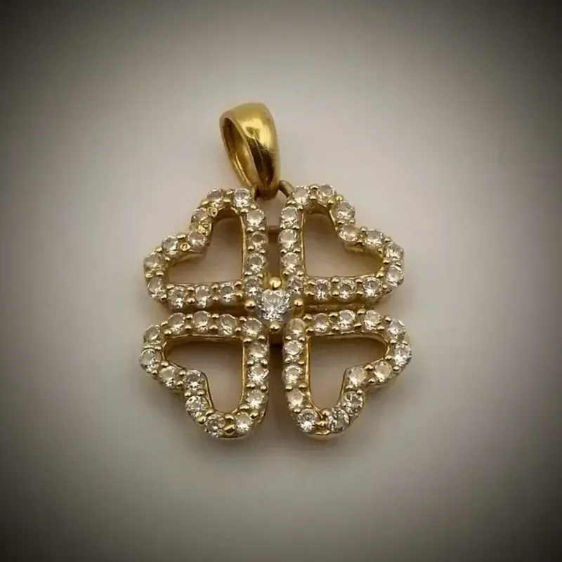 Dije Original 14K Son 4 Corazones con circones blanco formando una Flor mide de largo 2.8 cmy de ancho 2.3 cm