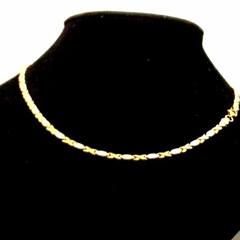 Gargantilla Original 14K Combinada Oro Blanco y Amarillo Sencilla mide de largo 46.5 cm y posee cierre de langosta
