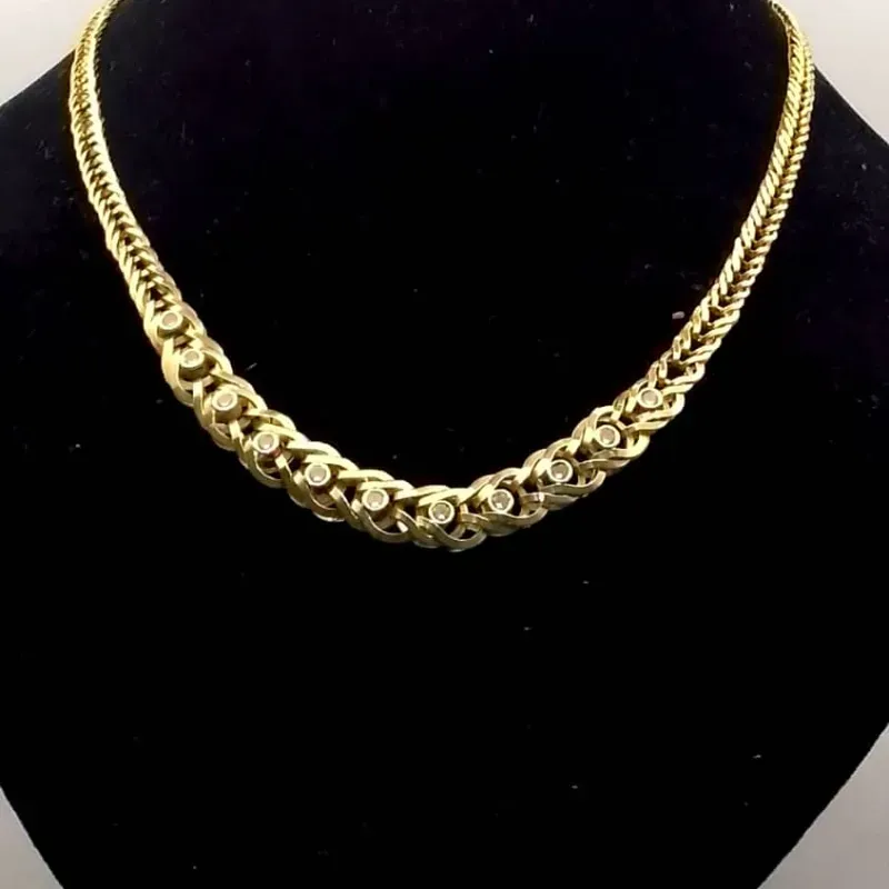Gargantilla Original 14K Reversible Con Gemas Blancas y Rojas mide de largo 44 cm y posee cierre de langosta